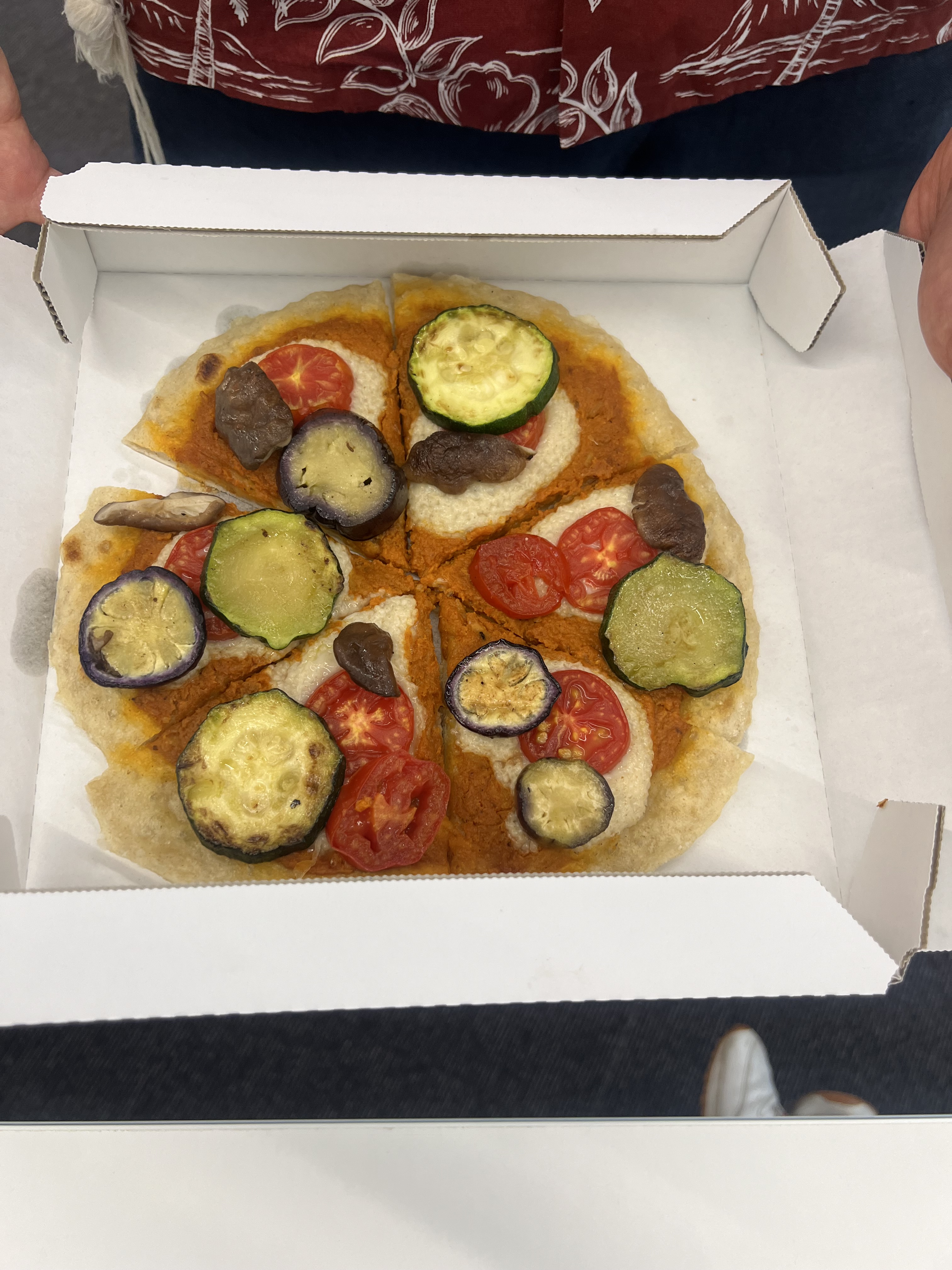 Verdict: I love Hikota-san’s Tiga vegan pizza and followed his Instagram @tiga-japan. Vegan pizza is certainly not one of my favorite foods or one that I would like to try but I would happily eat this one again. The crust was chewy and presented itself as a network of tiny aerated bubbles of varying sizes. The components of the pizza from the sauce to the vegetables were beautifully seasoned. I loved the fresh and vibrant pan-fried vegetables, and the foxtail millet has a braille-like, soft, and creamy texture that mimicked standard cheese. It seemed like my sentiment was shared with many other students as the ten slices of pizza left in the box were snatched up within minutes.