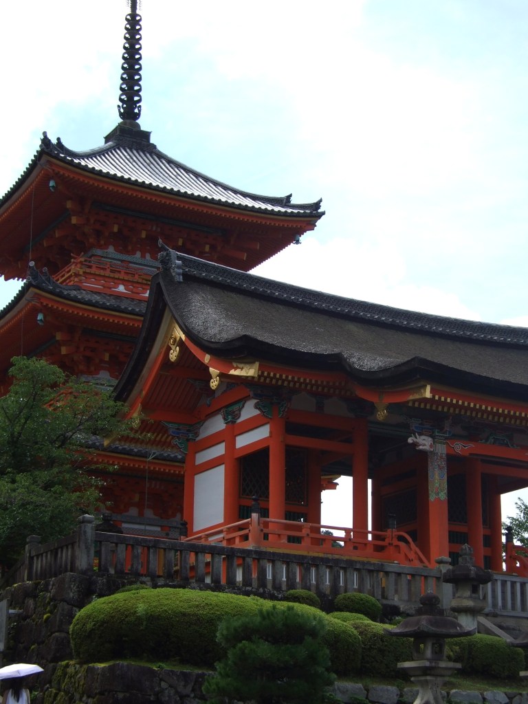 The red-orange Kiyomizudera Temple shined brightly upon us. After many clicks and flashes of cellphones, digital cameras, and professional cameras we all headed towards the Yasaka Shrine. The blistering sun was fighting against all of our umbrellas and electric or nonelectric handheld fans. But we persisted through the day!