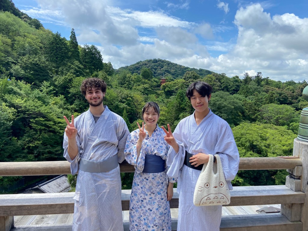 When attending festivals or going to shrines, some will wear traditional Japanese clothing such as kimonos. This shows one’s respect and appreciation for Japanese culture and history. Three students (Kerem, Andy, and Frederick) in our group wore traditional clothing!