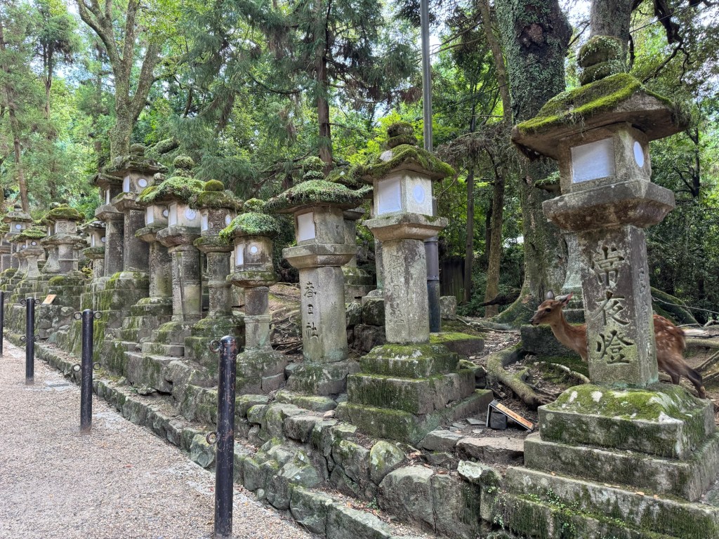At nine, the Nara group met in the hotel lobby and headed off to Kasuga Taisha shrine by a rapid line train and a bus for an hour. The shrine was owned by the Fujisawa family, an aristocratic family with ties to the emperor. With deer wandering around and thousands of moss-covered lanterns littered around, many took opportunities to take photos.