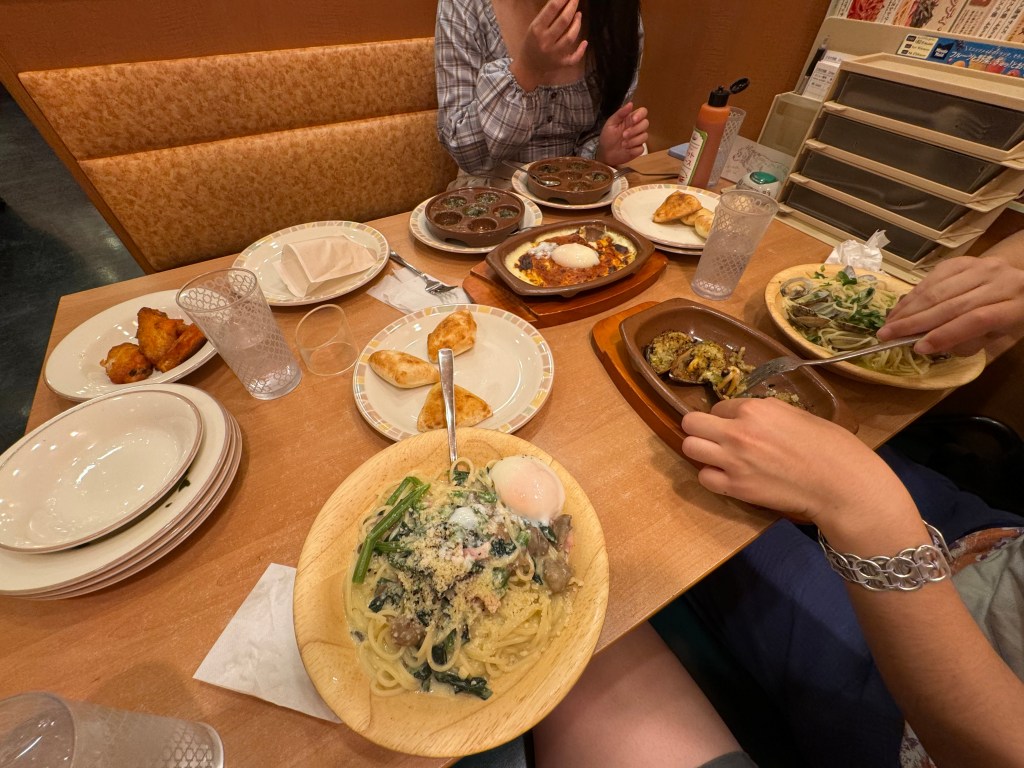 Hello everyone! Jo here again :)) Upon arriving back in Tokyo, I was ecstatic to come back to the Super Hotel Premier in Ikebukuro and to return to my favorite spots around the city. I spent a slower morning in the hotel, enjoying the breakfast buffet and then completing some project work, before heading out to grab a quick bite before class. Upon meeting Mandy, Daniel, and Rachel, we decided instead to indulge in our last Saizeriya feast! Luckily, we’d be returning to the same location, right off of Myōgadani station, where we had first tried this reliable and affordable Italian-adjacent cuisine.