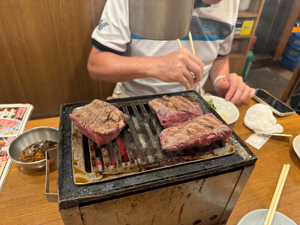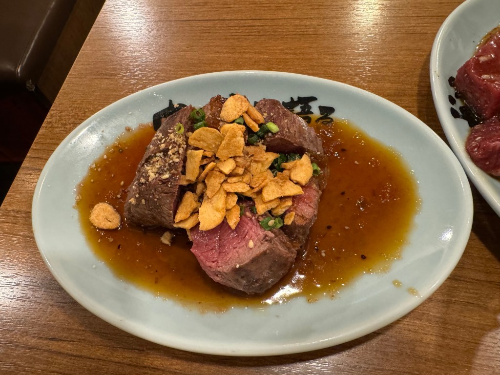 We started off at a yakiniku restaurant (Yakiniku Kokokara) located near Ningyōchō station, about a hop and a skip (it took me 40 minutes) away from where I was at Ochanomizu. After making my way through the Tokyo metro, I finally arrived at the establishment where Gemma met me with gifts of sunblock and green tea. As we waited for Tom to arrive, we ordered drinks (I got a peach sour) and sipped them slowly as I had the opportunity to reminisce about my entire month of traveling by showing her my endless rows of photos in my camera roll. She was amazed to see all the destinations we had visited, applauding me for having been able to experience the variety of landscapes that Japan has to offer, especially impressed by my stay at Nakamatsuya Ryokan in Ueda. Memories and stories were shared until Tom arrived…and this is where we really got down to business.