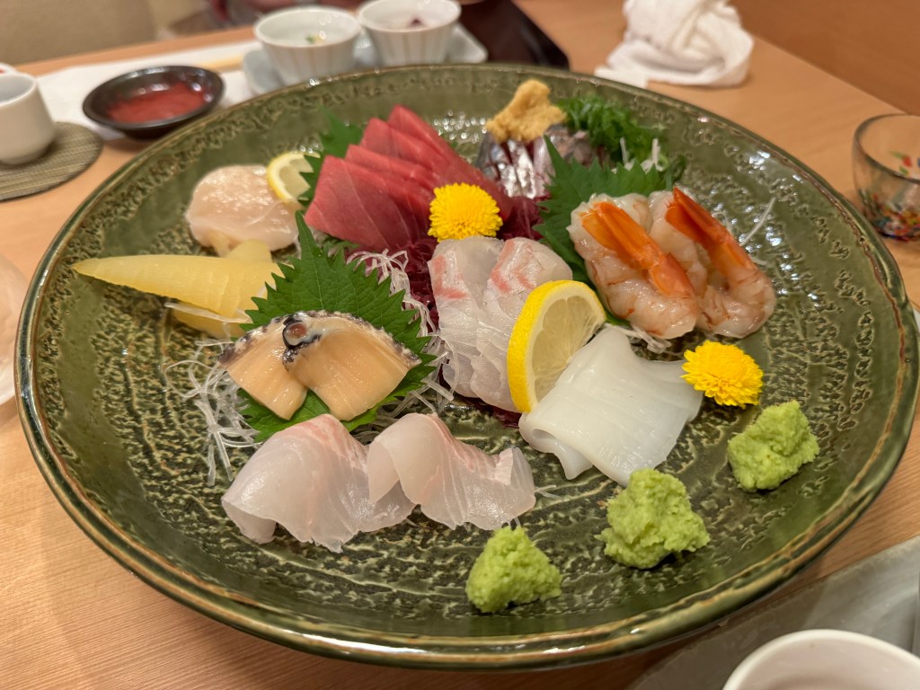 After some mild chatter about my plans for my last 2 days, a glorious platter of perfectly sliced seafood was set down in front of us. Somehow despite the month that I’ve been here, I was still trying new types of sashimi almost every time I had it.